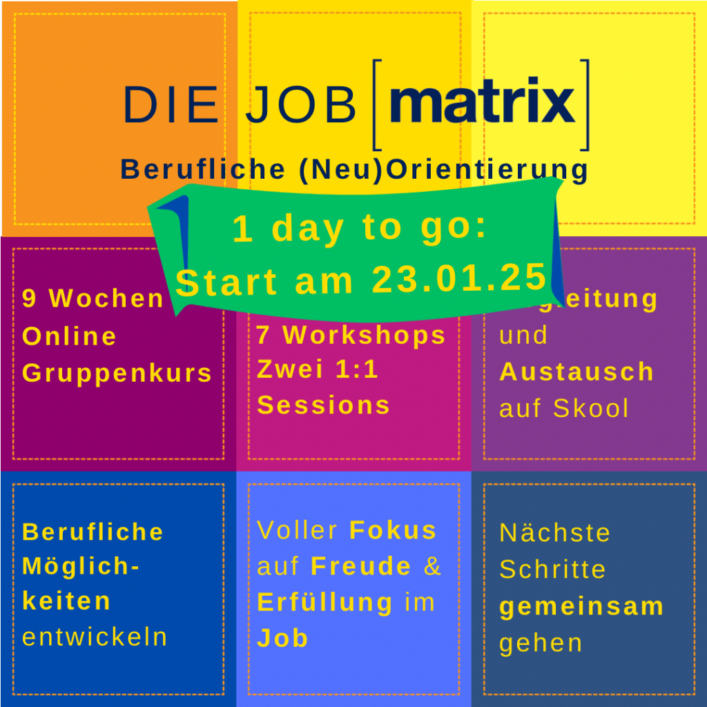 Der Januar 2025 startete dynamisch mit meinem ersten Gruppenprogramm – damals unter dem Namen JobMatrix. Weil das Wort Matrix für mich die Anzahl der Möglichkeiten symbolisiert, aus denen wir wählen können. Und das ist meine Überzeugung: dass wir alle immer viele Möglichkeiten haben, auch, wenn wir sie selber oft nicht sehen,
